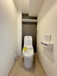 冬は便座も温水も温かく快適なシャワー付トイレ。上部には収納棚を設置◎