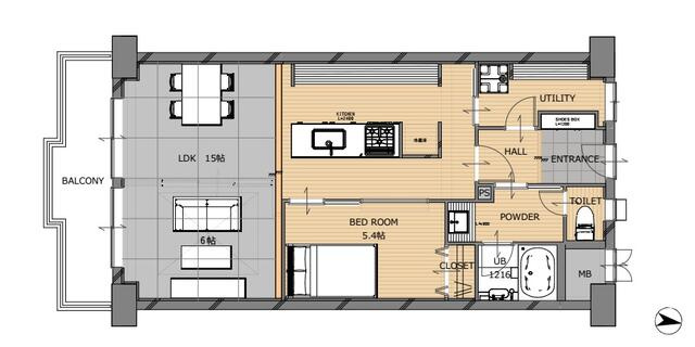 約60㎡の1LDK。LDKを仕切って2LDKとしても使えます。