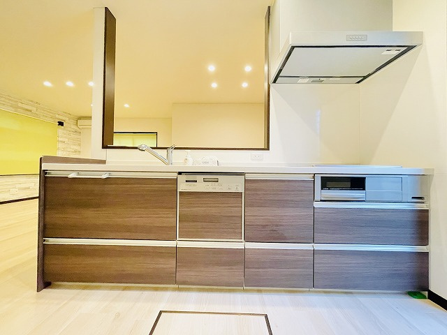 食洗器を備えたシステムキッチン。IHクッキングヒーターで安全です