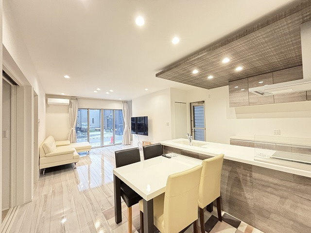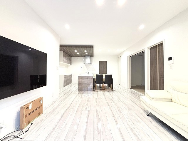 オーダーカーテンや65V型有機ELテレビ・ソファ・エアコン4台付きでそのままお使いいただけます♪