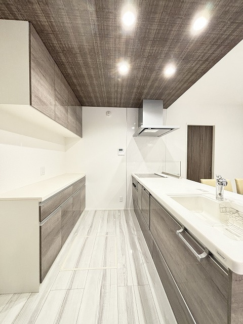 作業スペースも広いシステムキッチン。食洗器つきで家事も時短OK